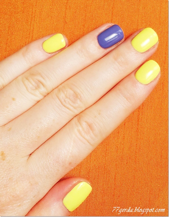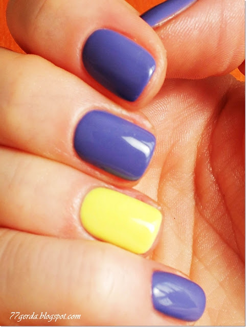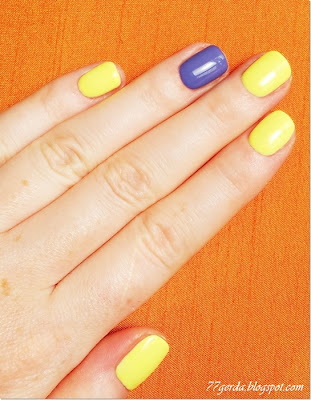 Dziś po długiej przerwie bez koloru zapodałam sobie mix 2 odcieni. Mocny żółty i fioletowy shellac.